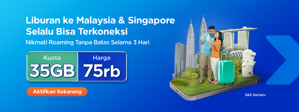 Paket Roaming Malaysia & Singapura 3 Hari: 35GB hanya Rp75 ribu, khusus untuk pelanggan yang melakukan perjalanan selama tiga hari misalnya untuk weekend getaway atau kunjungan beberapa hari.