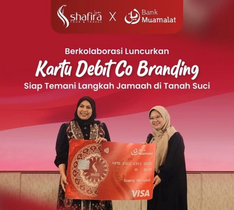 JAKARTA, HARIANHALUAN.ID — PT Bank Muamalat Indonesia Tbk telah meluncurkan kartu debit co-branding eksklusif bersama Shafira Tour & Travel. Sinergi yang dijalin ini guna memberikan kemudahan dan kenyamanan transaksi keuangan syariah bagi jemaah haji.
