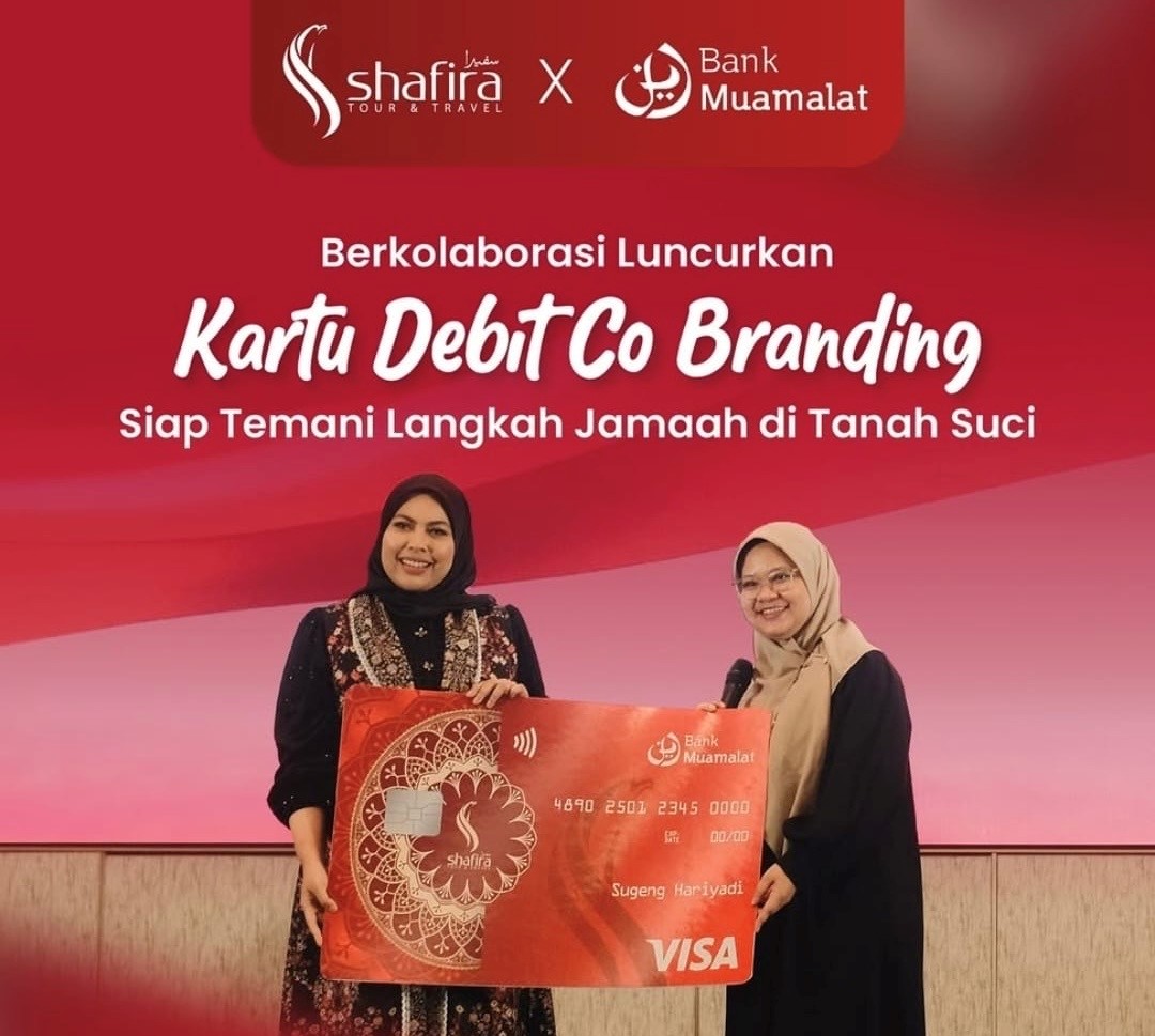 Peluncuran kartu debit co-branding Bank Muamalat dan Shafira ini dilakukan bersamaan dengan manasik akbar bagi jemaah Shafira Tour & Travel di Surabaya, Jawa Timur. Selain penyerahan buku tabungan dan kartu debit co-branding Bank Muamalat dan Shafira, nasabah juga difasilitasi untuk mengaktifkan mobile banking Muamalat DIN, serta penawaran berbagai produk unggulan Bank Muamalat.