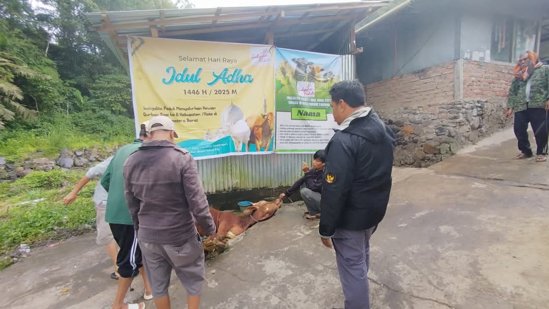 Penyembelihan dilakukan di halaman Musala Nurul Yaqin, Sabtu pagi (7/6/2025), sekitar pukul 08.15 WIB.Sapi dengan berat sekitar 80 kilogram tersebut diserahkan langsung oleh perwakilan Indojalito Peduli kepada Pemerintah Kota Padang Panjang melalui Wali Kota Hendri Arnis.