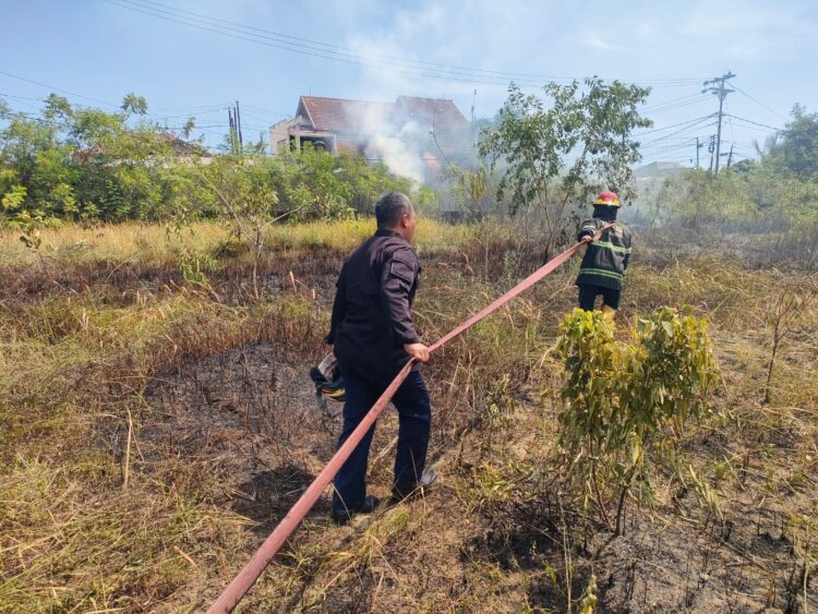 PADANG, HARIANHALUAN.ID (13/6/2025) — Kebakaran lahan ilalang seluas satu hektar terjadi di kawasan padat penduduk di Jalan Selaguri, Kelurahan Parupuk Tabing, Kecamatan Koto Tangah, Padang, Jumat (13/6/2025) siang.