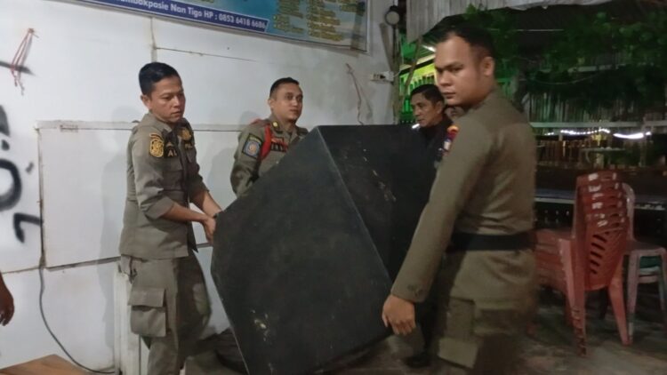 PADANG, HARIANHALUAN.ID – Satuan Polisi Pamong Praja (Satpol PP) Kota Padang menggelar operasi penertiban terhadap aktivitas karaoke di kawasan Pasir Jambak, Kecamatan Koto Tangah, Kota Padang, Minggu (15/6/2025) dini hari. Langkah ini dilakukan menyusul adanya keluhan masyarakat terkait gangguan kebisingan yang ditimbulkan dari aktivitas hiburan malam tersebut.