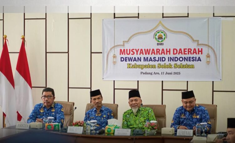 SOLOK SELATAN, HARIANHALUAN.ID– Wakil Bupati Solok Selatan, H. Yulian Efi, resmi terpilih sebagai Ketua Dewan Masjid Indonesia (DMI) Kabupaten Solok Selatan periode 2025–2030. Penetapan ini dilakukan dalam Musyawarah Daerah (Musda) II DMI Solok Selatan yang digelar di Kantor Bupati Solok Selatan, Selasa (17/6/2025).
