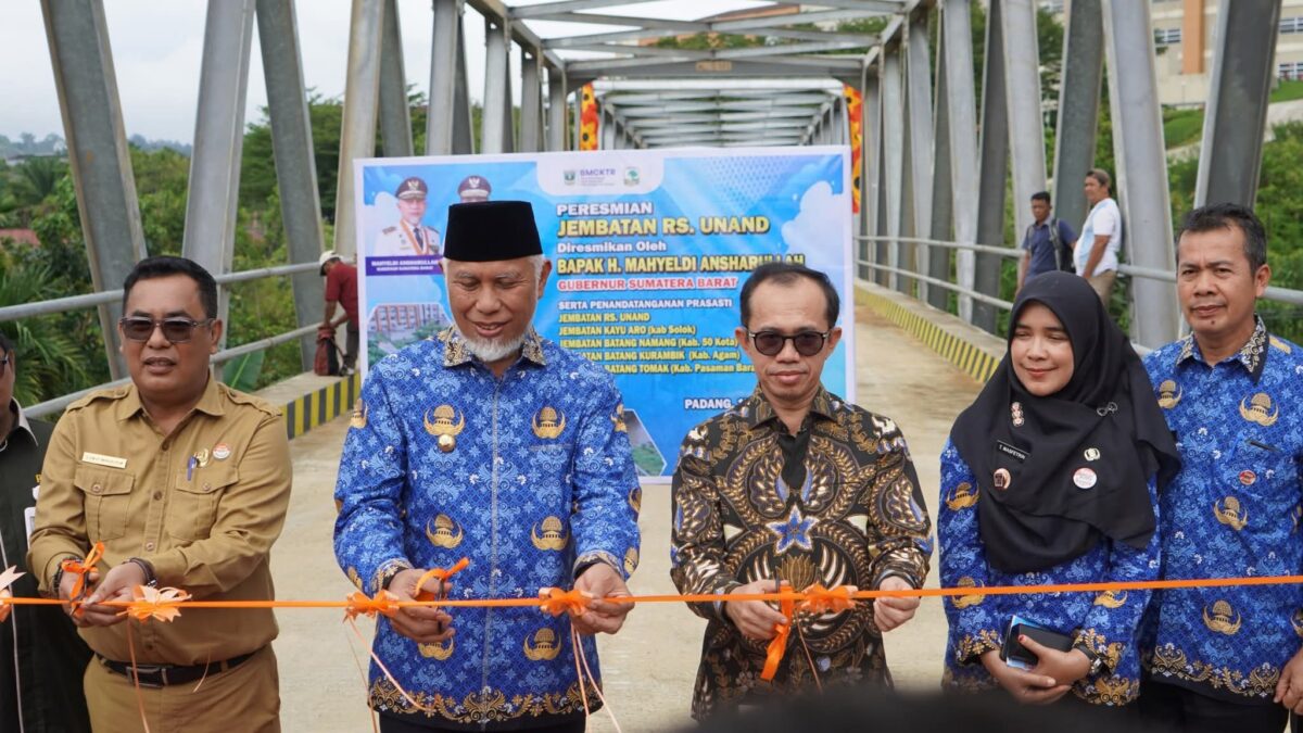 PADANG, HARIANHALUAN.ID — Akses menuju Rumah Sakit Universitas Andalas (RS Unand) kini lebih terbuka dan efisien. Jembatan baru yang menghubungkan kawasan kampus dan rumah sakit tersebut diresmikan pada Selasa (17/6/2025) oleh Gubernur Sumatera Barat Mahyeldi Ansharullah, bersama Rektor Universitas Andalas, jajaran RS Unand, dan unsur Pemerintah Kota Padang.