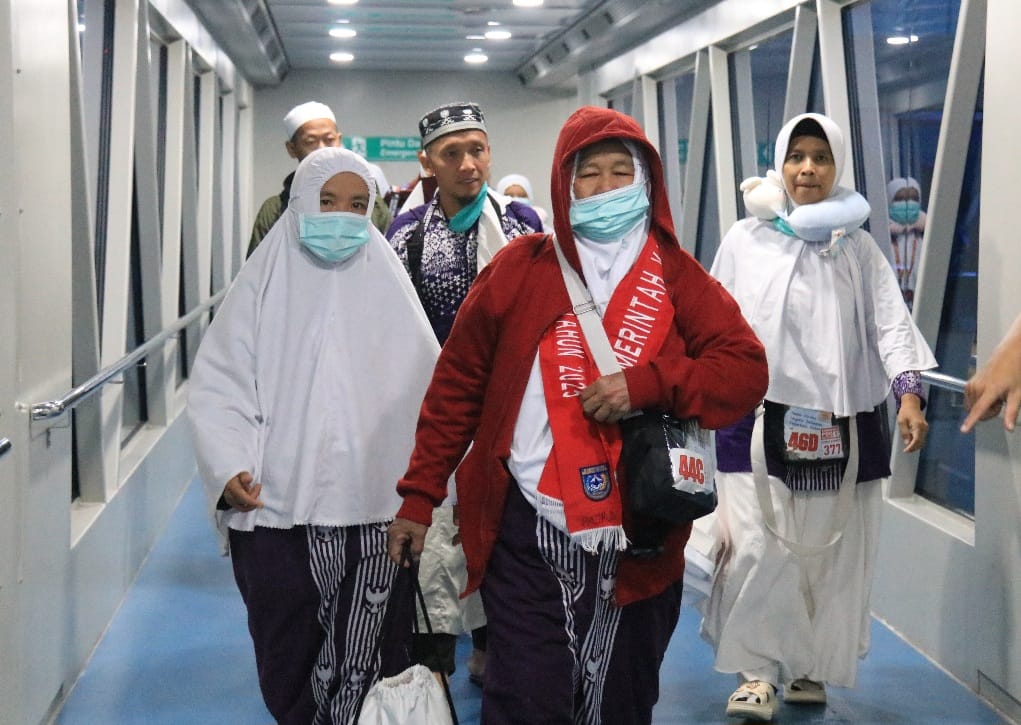 PADANG, HARIANHALUAN.ID- Kedatangan Kloter PDG 05 dari tanah suci, tutup rangkaian pemulangan jemaah haji Debarkasi Padang asal Provinsi Bengkulu. Sebagai Embarkasi Antara 5 (lima) kloter Bengkulu berangkat dan pulang melalui Bandara Minangkabau.