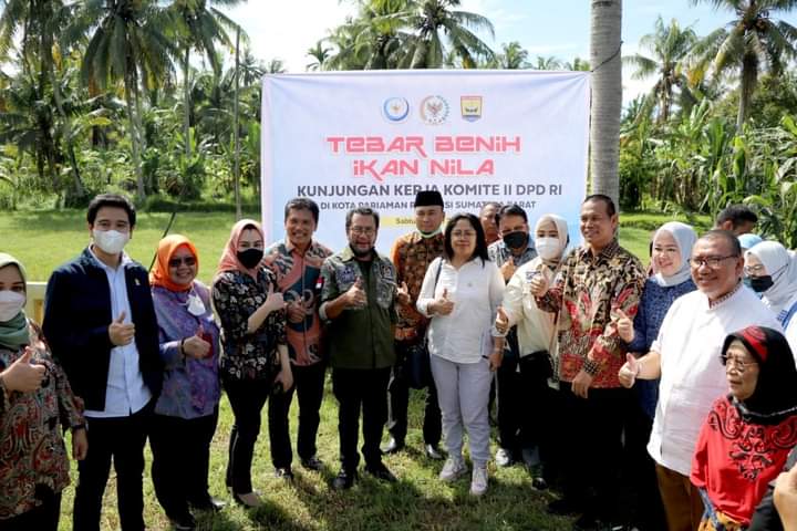 HARIANHALUAN.ID – Walikota Pariaman, Genius Umar, Sabtu (18/6/2022), menerima kunjungan 14 orang Anggota DPD RI, serta Direktur Kementerian di Desa Batang Tajongkek, Kecamatan Pariaman Selatan, guna melakukan tebar benih ikan nila di wisata edukasi Kolam Pancing.
