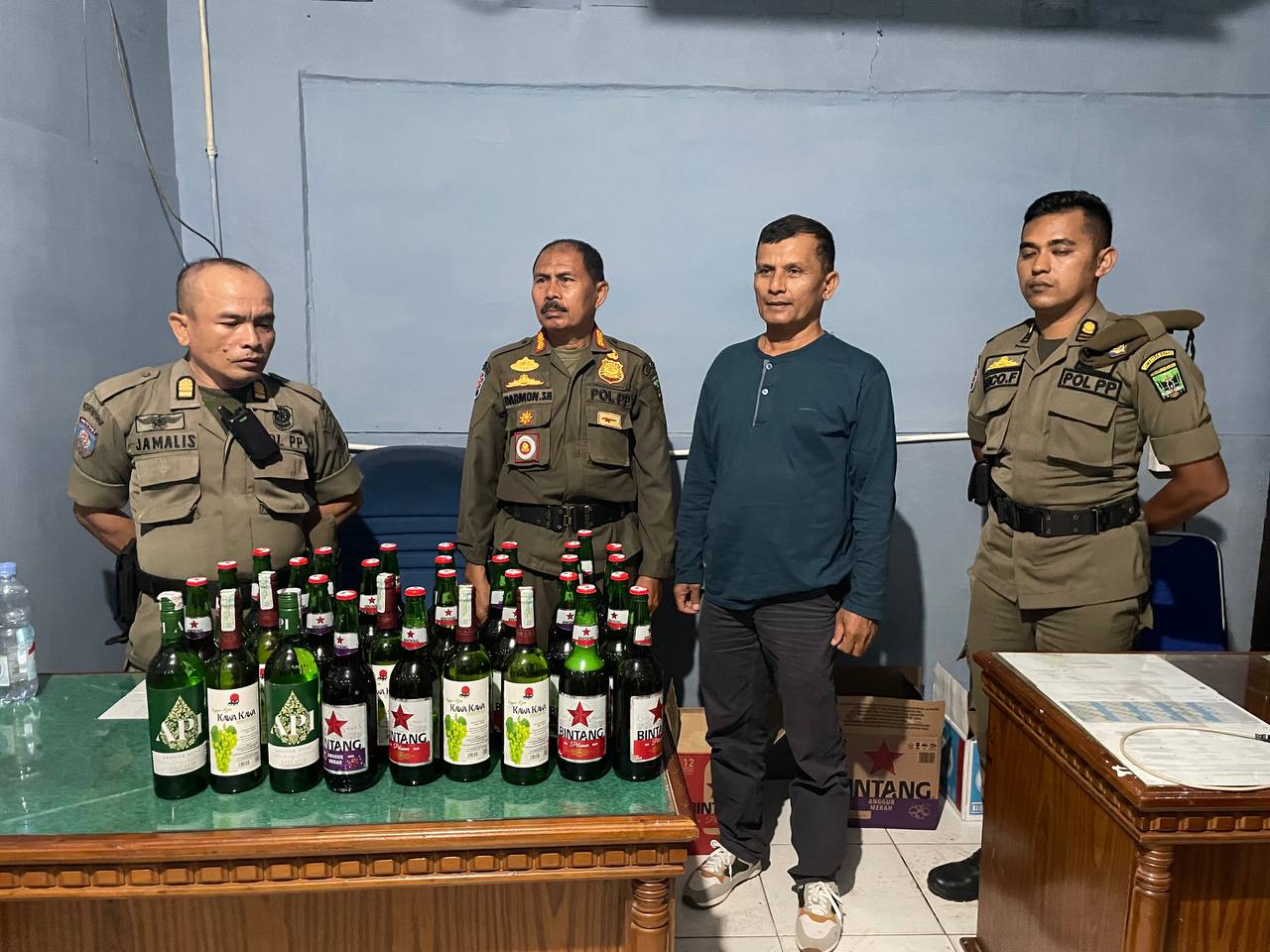 Dalam operasi tersebut, petugas turut mengamankan barang bukti berupa minuman beralkohol golongan A dan B, serta dua orang perempuan yang diduga sebagai pemandu lagu.