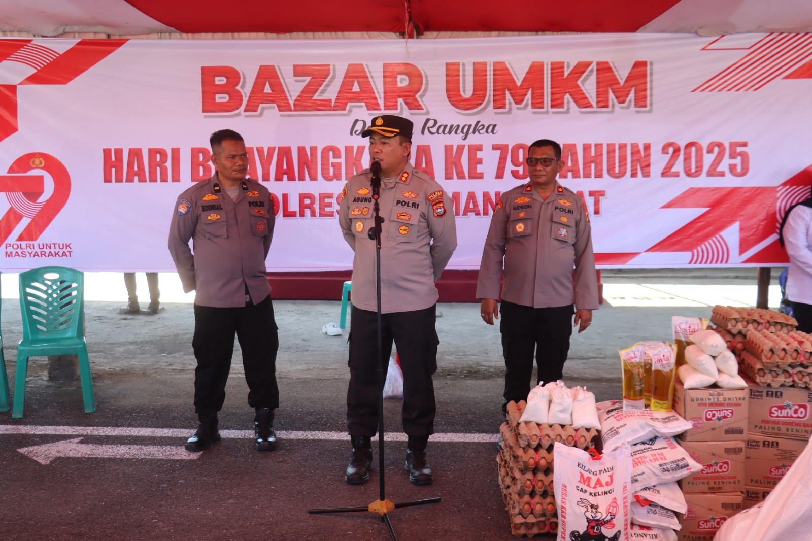PASBAR, HARIANHALUAN.ID– Memperingati Hari Bhayangkara ke-79 tahun 2025 Kepolisian Resor (Polres) Pasaman Barat, Sumatera Barat (Sumbar), menggelar Bazar Usaha Mikro Kecil Menengah (UMKM), yang dilaksanakan di halaman Mako Polres setempat pada Senin (30/6/2025).