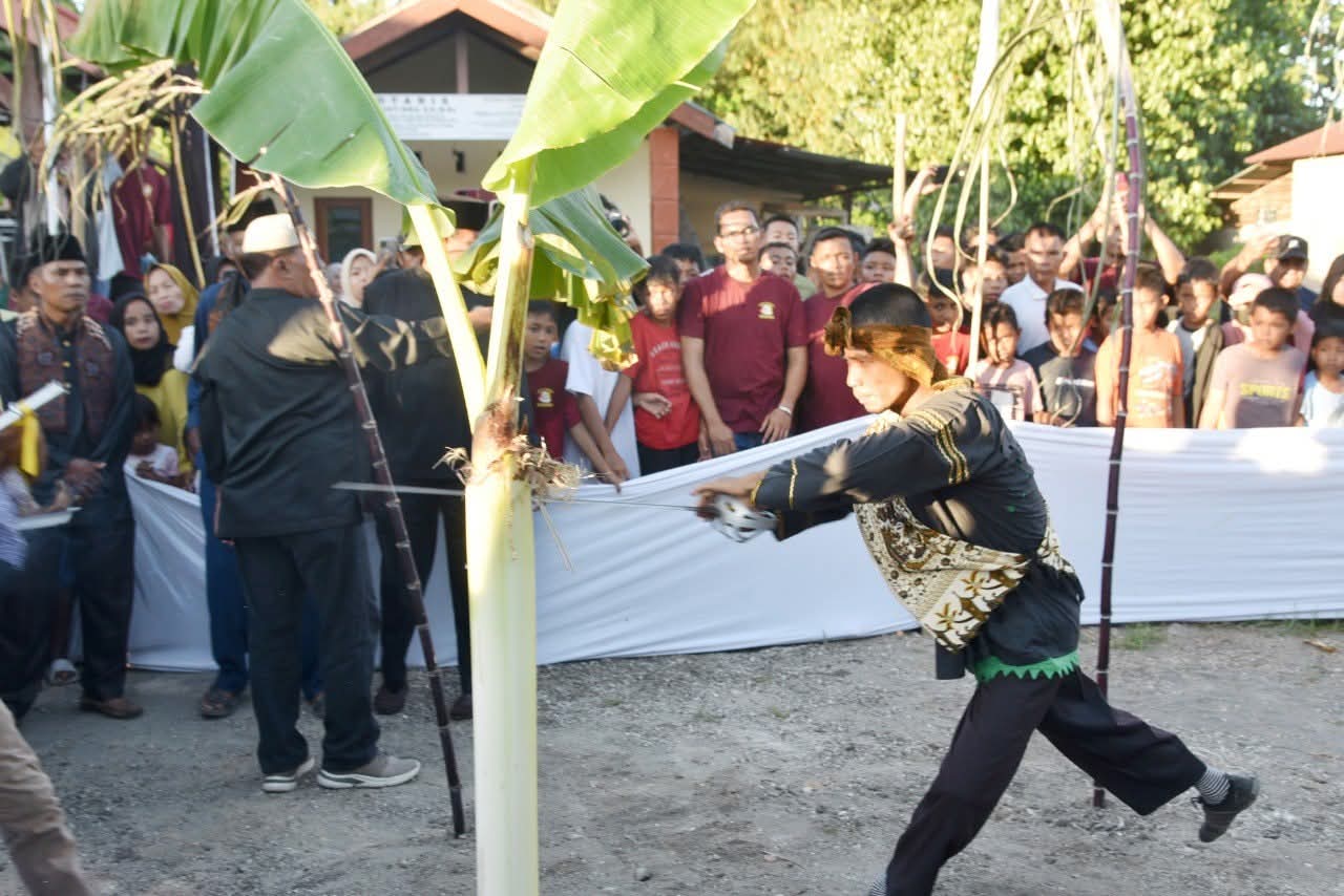 Kemudian pedang yang akan digunakan sebagai alat untuk manabang patang pisang dan tebu, diarak terlebih dahulu oleh orang tuo tabuik dan anak tabuik yang diiringi dengan pukulan gandang tasa menuju lokasi tempat batang pisang yang akan ditebang tersebut. (*)