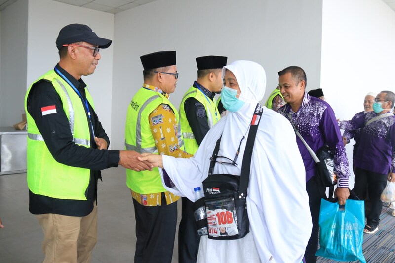 Kedatangan jemaah haji kloter 12 asal Lima Puluh Kota, Payakumbuh, dan Kota Padang, disambut haru bercampur bahagia oleh seluruh panitia dan keluarga jemaah di Asrama Haji, Tabing, Padang, Kamis (3/7/2025) malam.