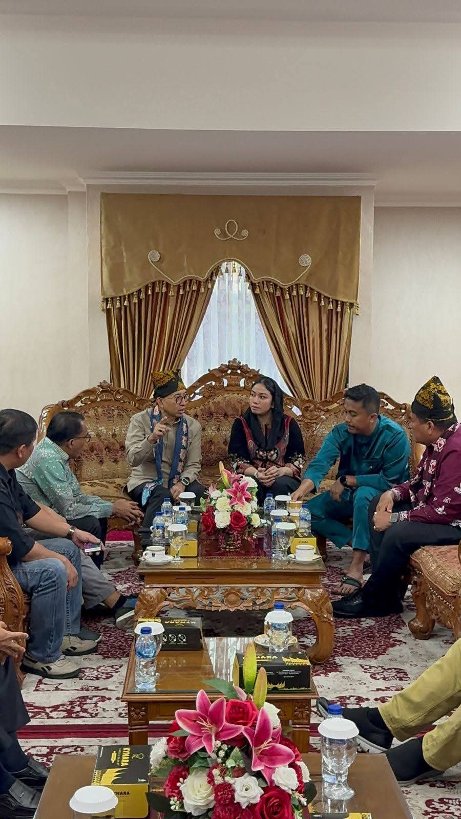 DHARMASRAYA, HARIANHALUAN.ID- Bupati Dharmasraya, Annisa Suci Ramadhani, bertemu dengan Menteri Kebudayaan (Menbud) Republik Indonesia, Fadli Zon, dalam sebuah diskusi mengenai pelestarian warisan budaya Indonesia, di Padang, Minggu (7/7/2025).