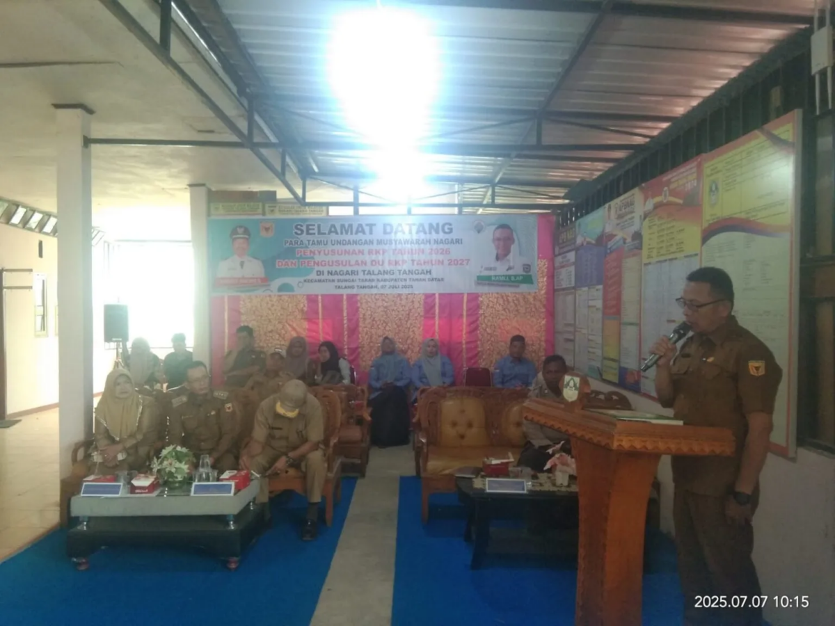 TALANG TANGAH, HARIANHALUAN.ID – Untuk penyusunan Rencana Kerja Pemerintah (RKP) Tahun 2026, Nagari Talang Tangah, Kecamatan Sungai Tarab, Tanah Datar, gelar Musyawarah Nagari (Musnag) yang diadakan aula nagari setempat, Senin (7/6).