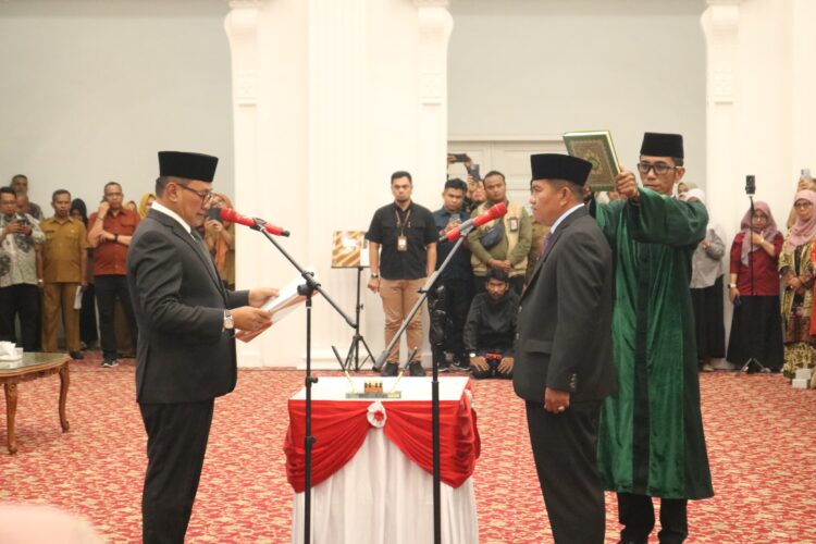 Teks foto : Pelantikan dan pengambilan sumpah Sekda Bukittinggi oleh Wali Kota Ramlan Nurmatias, Selasa (8/7). Gatot