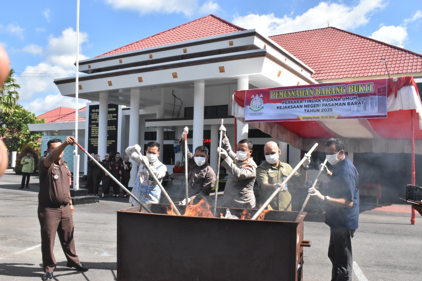 Pemusnahan barang bukti ini turut dihadiri oleh Kapolres Pasaman Barat, perwakilan Pengadilan Negeri Pasaman Barat, BNNK, unsur Forkopimda Pasaman Barat, dan pejabat struktural Kejaksaan Negeri Pasaman Barat.