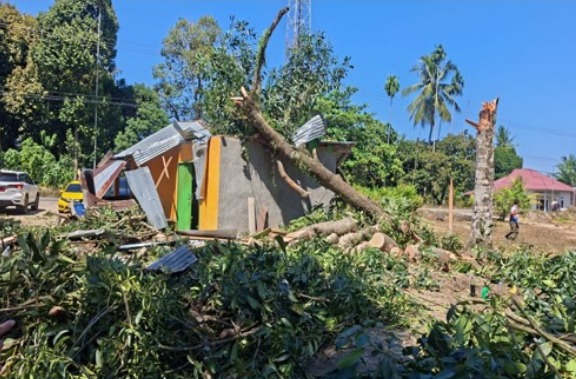 Teks foto: Sejumlah bangunan mengalami kerusakan akibat angin kencang yang mnelanda wilayah Kecamatan Kepehuhan, Kabupaten Rokan Hulu Riau pada Rabu (9/7). Sumber Foto: BPBD Kabupaten Rokan Hulu