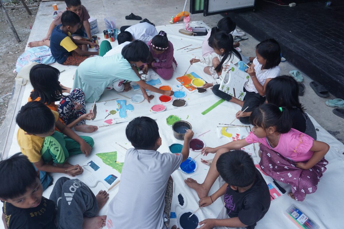 Teks foto: Aktivitas anak-anak Kelana Akhir Pekan KSNT yang sibuk menggambar dan bermain. IST