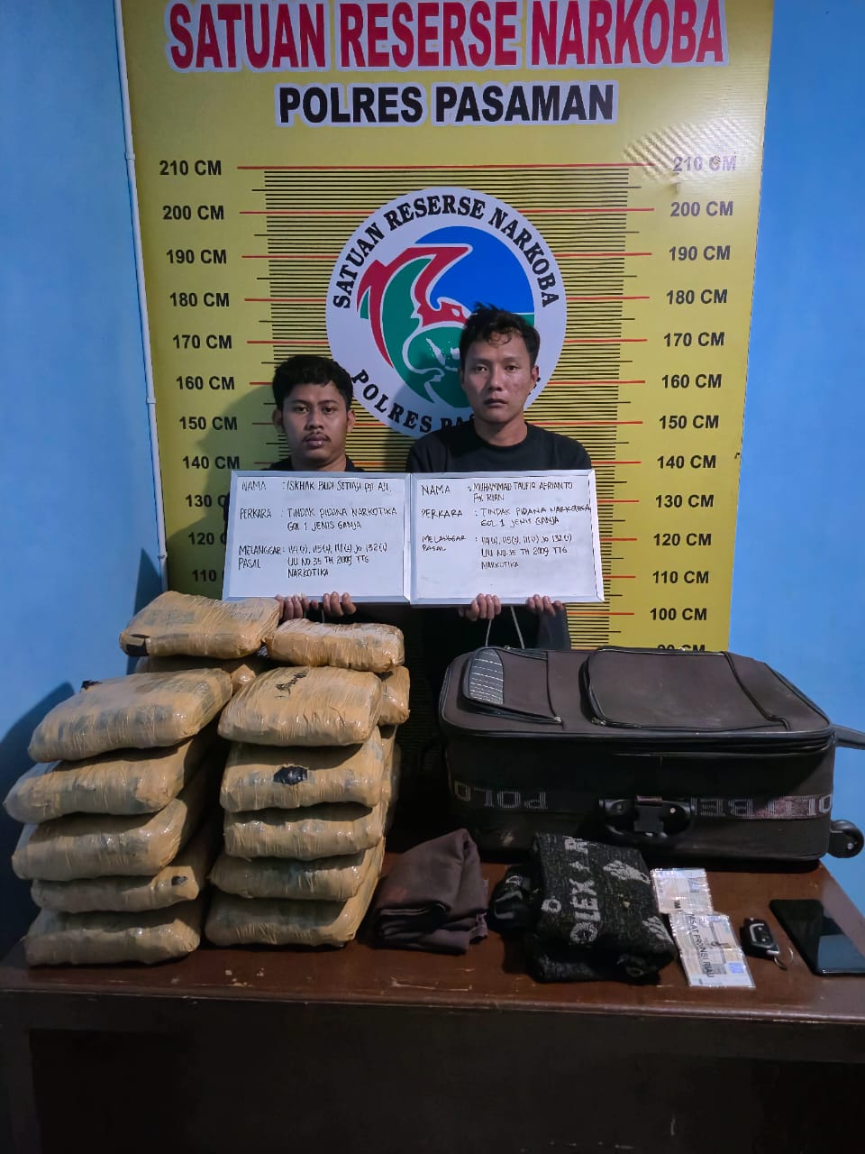 PASAMAN, HARIANHALUAN.ID — Tim Opsnal Satuan Resnarkoba Polres Pasaman telah mengamankan 2 (dua) orang laki-laki berinisial MTA (26) dan IBS (26) yang diduga telah melakukan tindak pidana narkotika golongan I dalam bentuk tanaman jenis ganja sebanyak 21 Paket Besar Ganja.