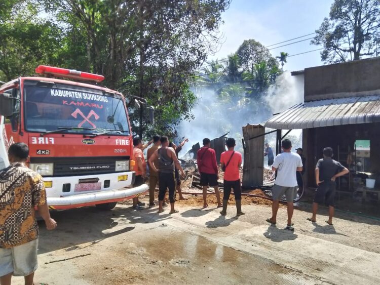 SIJUNJUNG,HARIANHALUAN.ID — Musibah kebakaran terjadi, Senin (21/7) di Jorong Koto Lamo Nagari Muaro Takung Kecamatan Kamang Baru. Dua unit rumah semi permanen da dua unit sepeda motor ludes dilahap si jago merah.