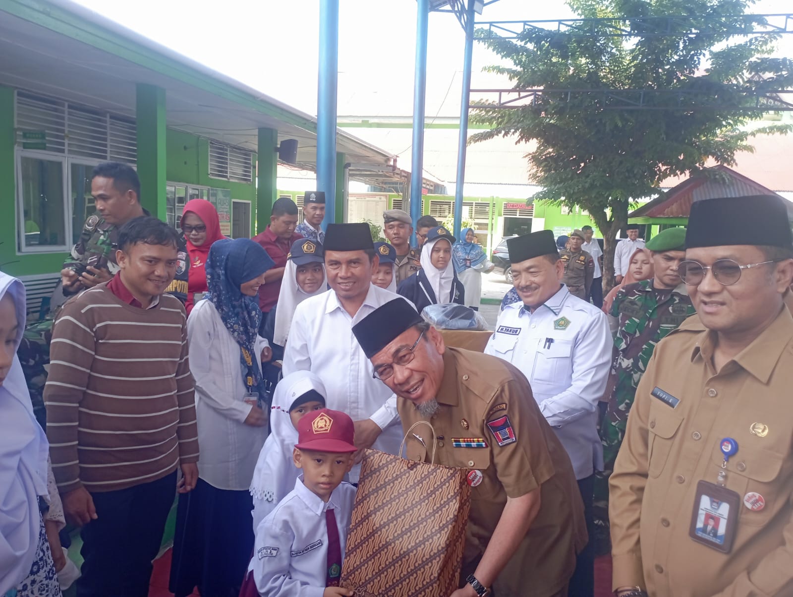 HARIANHALUAN. ID – Pemko Padang menyerahkan bantuan pakaian seragam gratis bagai siswa MTs dan MI se-Kota Padang di Madrasah Tsanawiyah Negeri (MTsN) 6 Padang, Selasa (22/7/25).Â