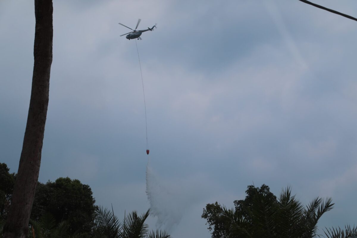 Keterangan foto : Proses pemadaman kebakaran hutan dan lahan menggunakan helikopter water bombing BNPB di wilayah Kecamatan Rambah Kabupaten Rokan Hulu, Provinsi Riau pada Kamis (24/7). IST
