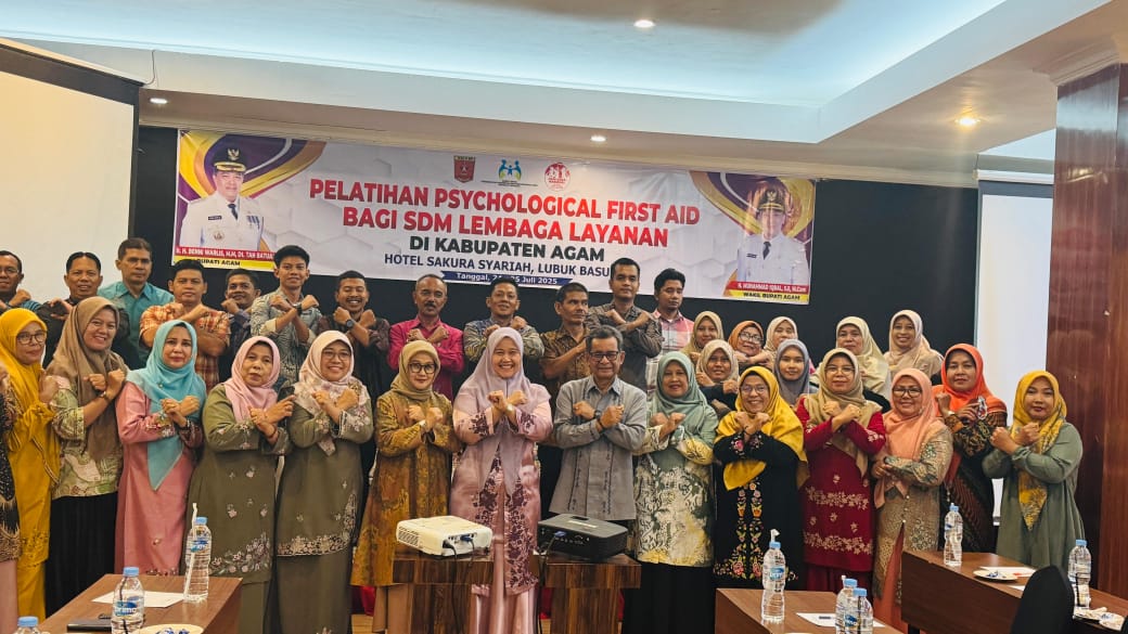 AGAM, HARIANHALUAN.ID – Pemerintah Kabupaten Agam melalui Dinas Pengendalian Penduduk, Keluarga Berencana, Pemberdayaan Perempuan dan Perlindungan Anak (Dalduk KB PP dan PA) menggelar pelatihan Psychological First Aid (PFA) atau dukungan psikologis awal bagi anak korban kekerasan, Kamis-Jumat (24-25 Juli 2025) di Hotel Sakura Syariah, Lubuk Basung.
