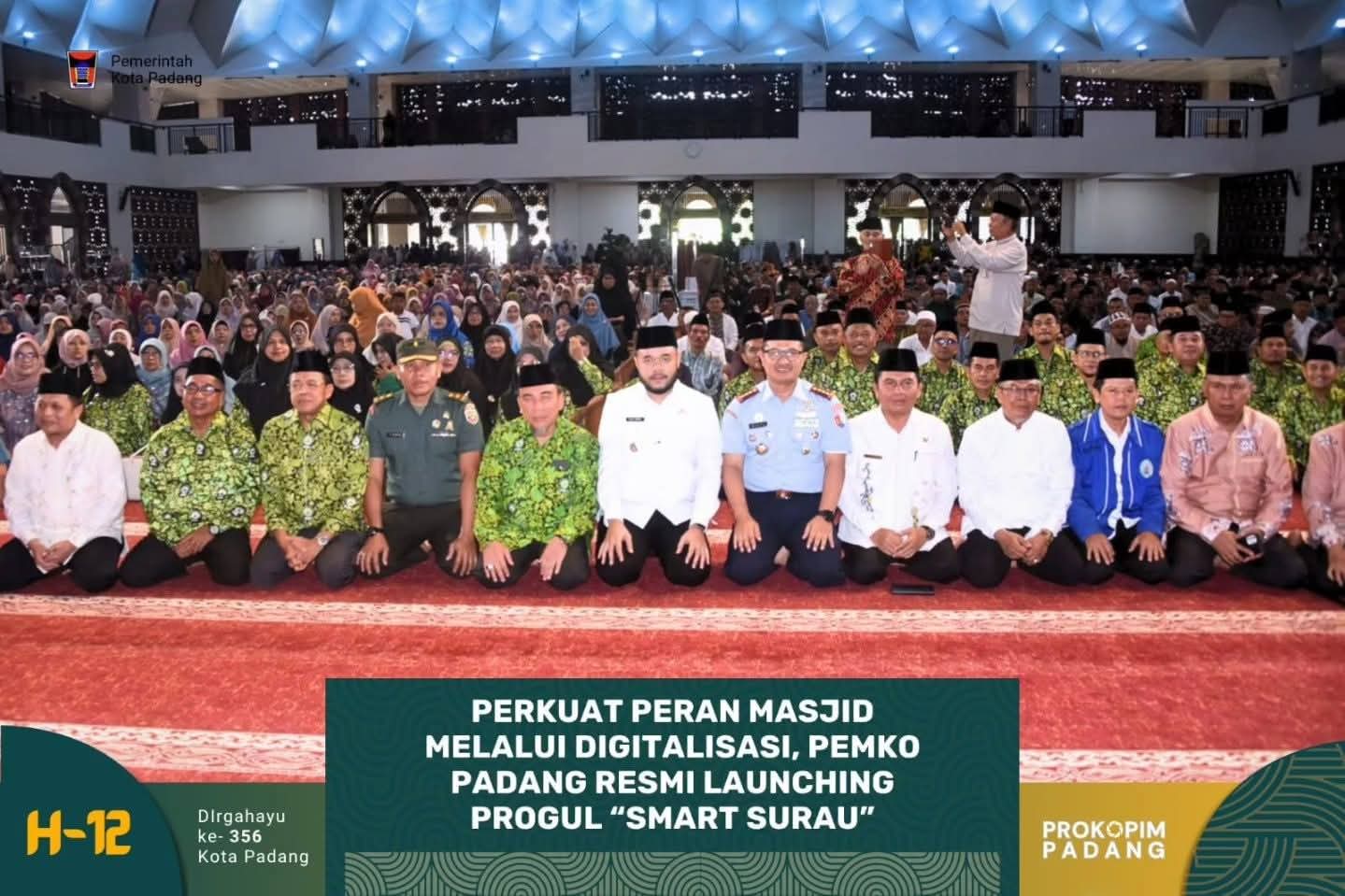 HARIAN HALUAN. ID- Dihadiri ribuan jamaah yang terdiri dari aparatur sipil negara (ASN) dan masyarakat, Wali Kota (Wako) Padang Fadly Amran me-lounching program unggulan Smart Surau di Masjid Raya Sumbar Syekh Ahmad Khatib Al Minangkabawi, Sabtu (26/7/25).