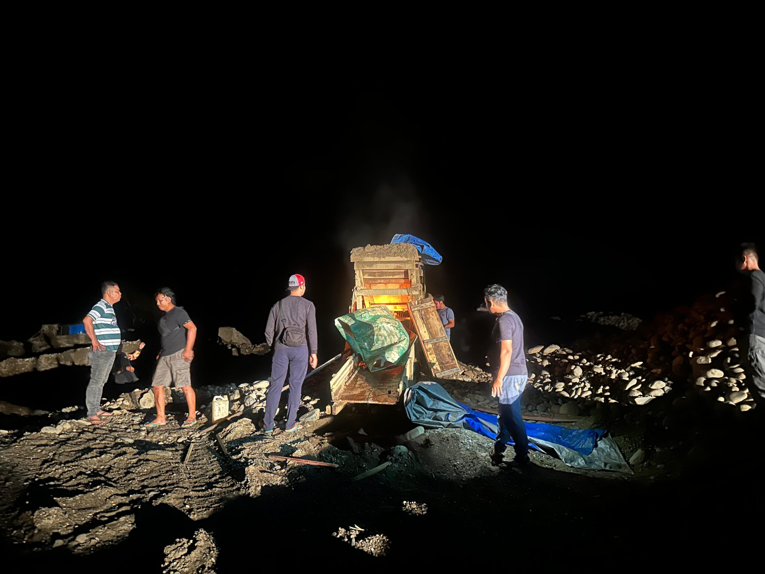Namun situasi berbeda terjadi di lokasi ini. Saat personel melakukan pemeriksaan, tim mendapati aktivitas tambang yang masih berlangsung dan pelaku yang menggunakan mesin robin.