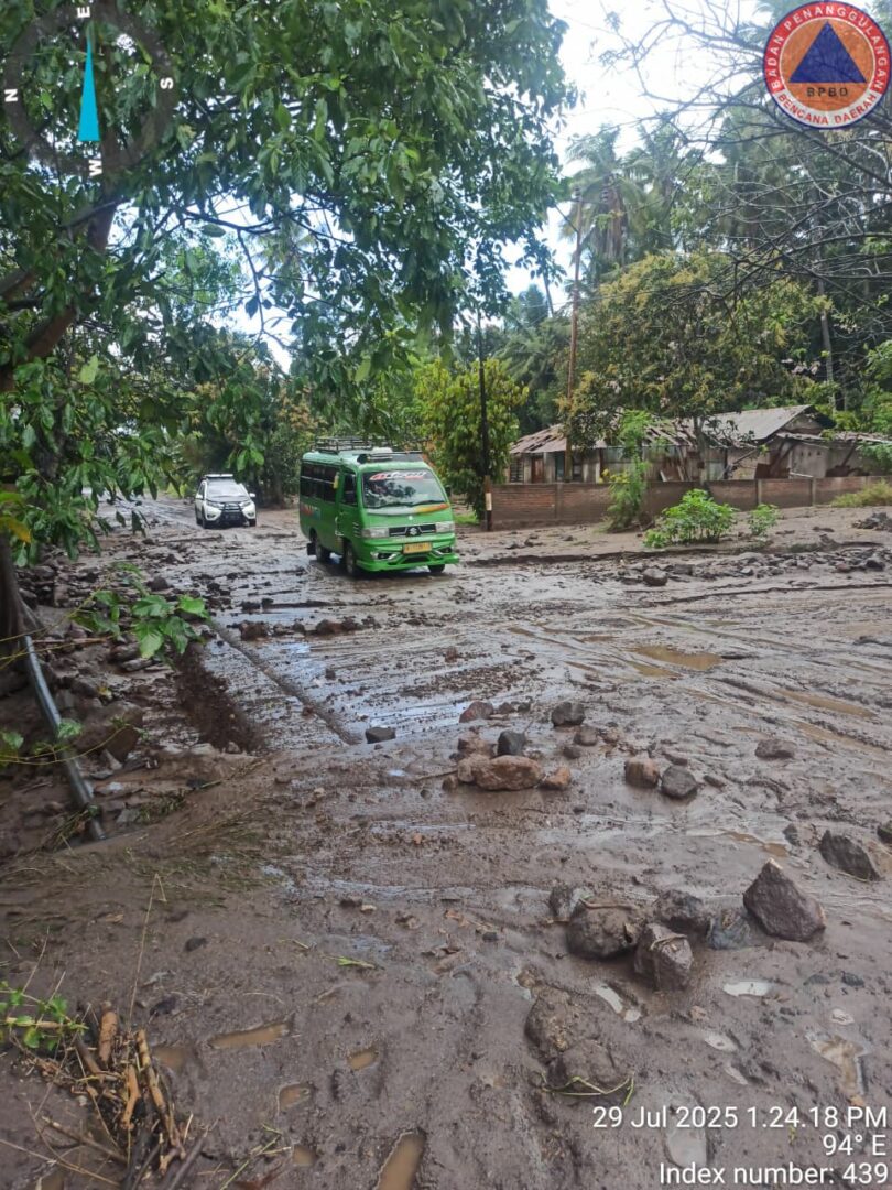 FLORES TIMUR, HARIANHALUAN.ID – Curah hujan tinggi di kawasan puncak dan lereng Gunungapi Lewotobi Laki-laki memicu terjadinya banjir lahar dingin yang melanda wilayah Kecamatan Ilebura, Kabupaten Flores Timur. Hujan deras yang terjadi sejak Senin (28/7) lalu itu membawa material vulkanik seperti pasir, kerikil, dan batuan yang sebelumnya tertimbun akibat aktivitas erupsi.