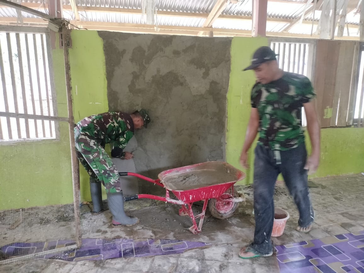 Selama beberapa pekan lebih anggota TNI bersama-sama masyarakat bahu-membahu mewujudkan agar Musala yang sebelumnya tidak layak pakai lagi menjadi tempat beribadah yang nyaman.