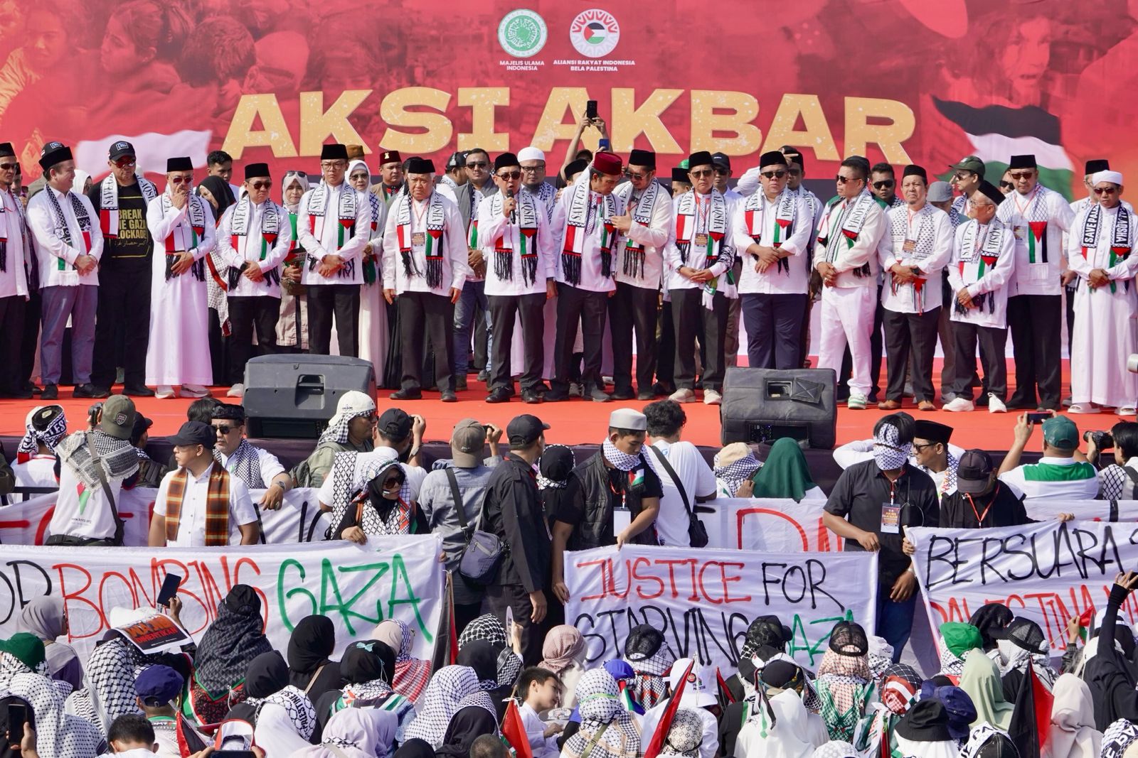 Dalam orasinya, Menteri Kebudayaan Fadli Zon menyampaikan bahwa sikap dan komitmen pemerintah Indonesia di bawah kepemimpinan Presiden Republik Indonesia, Bapak Prabowo Subianto, akan terus mendukung penuh kemerdekaan Palestina untuk menjadi negara berdaulat. Sikap ini juga berlandaskan pada amanat konstitusi Indonesia yang menentang segala bentuk penjajahan serta penindasan di dunia.
