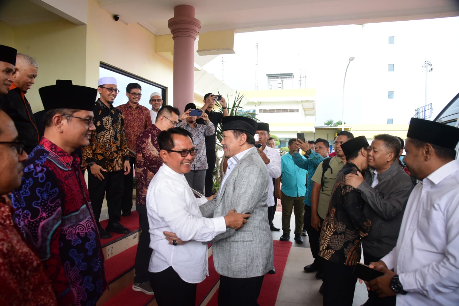 PADANG PARIAMAN, HARIANHALUAN.ID — Bupati Padang Pariaman, Dr. John Kenedy Azis, menyambut Ketua Baznas RI, Prof. Dr. KH. Noor Achmad, MA, di Bandara Internasional Minangkabau, Minggu (10/8).