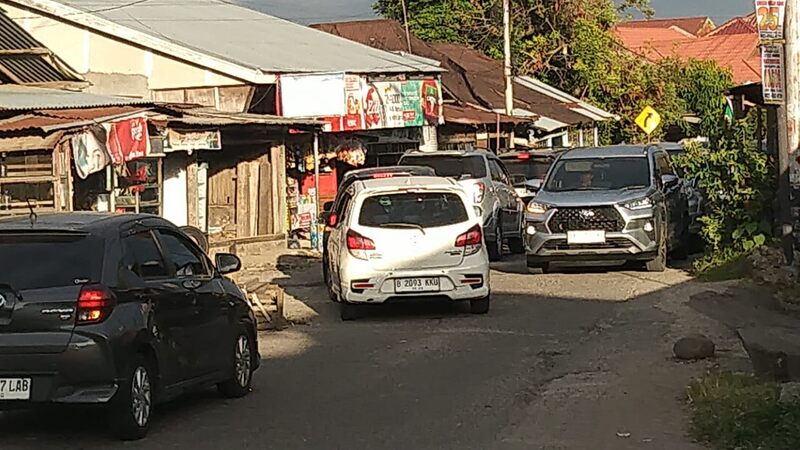 Mantan Ketua LLDIKTI X juga mengeluhkan Jalan berlubang yang menyebabkan macet di dekat Masjid Raya Tasykuran, Korong Gadang, menuju Universitas Adzkia.