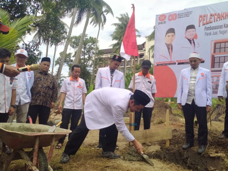TANAH DATAR, HARIANHALUAN.ID -Peletakan batu pertama pembangunan Kantor Sekretariat Dewan Pimpinan Tingkat Daerah (DPTD) Partai Keadilan Sejahtera (PKS) Kabupaten Tanah Datar berlangsung meriah di Jorong Parak Juar, Nagari Baringin, Kecamatan Lima Kaum, Rabu (20/8/2025).