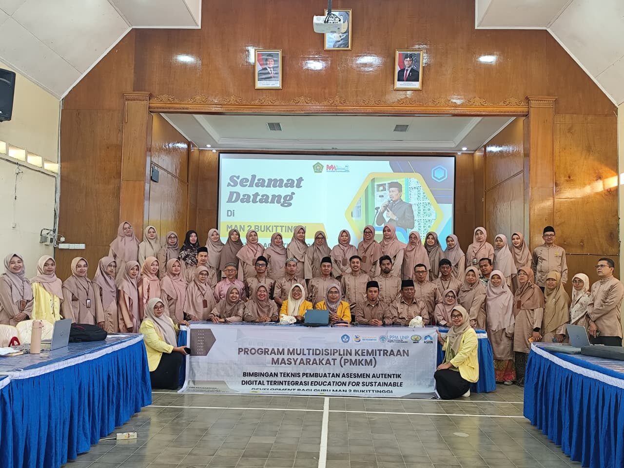 BUKITTINGGI, HARIANHALUAN.ID – Universitas Negeri Padang (UNP) melalui Program Multidisiplin Kemitraan Masyarakat (PMKM) menggelar kegiatan Bimbingan Teknis (Bimtek) Pembuatan Asesmen Autentik Digital bagi guru MAN 2 Bukittinggi. Kegiatan ini berlangsung Jumat (22/8/2025), di aula MAN 2 Bukittinggi dengan melibatkan seluruh guru madrasah sebagai peserta.