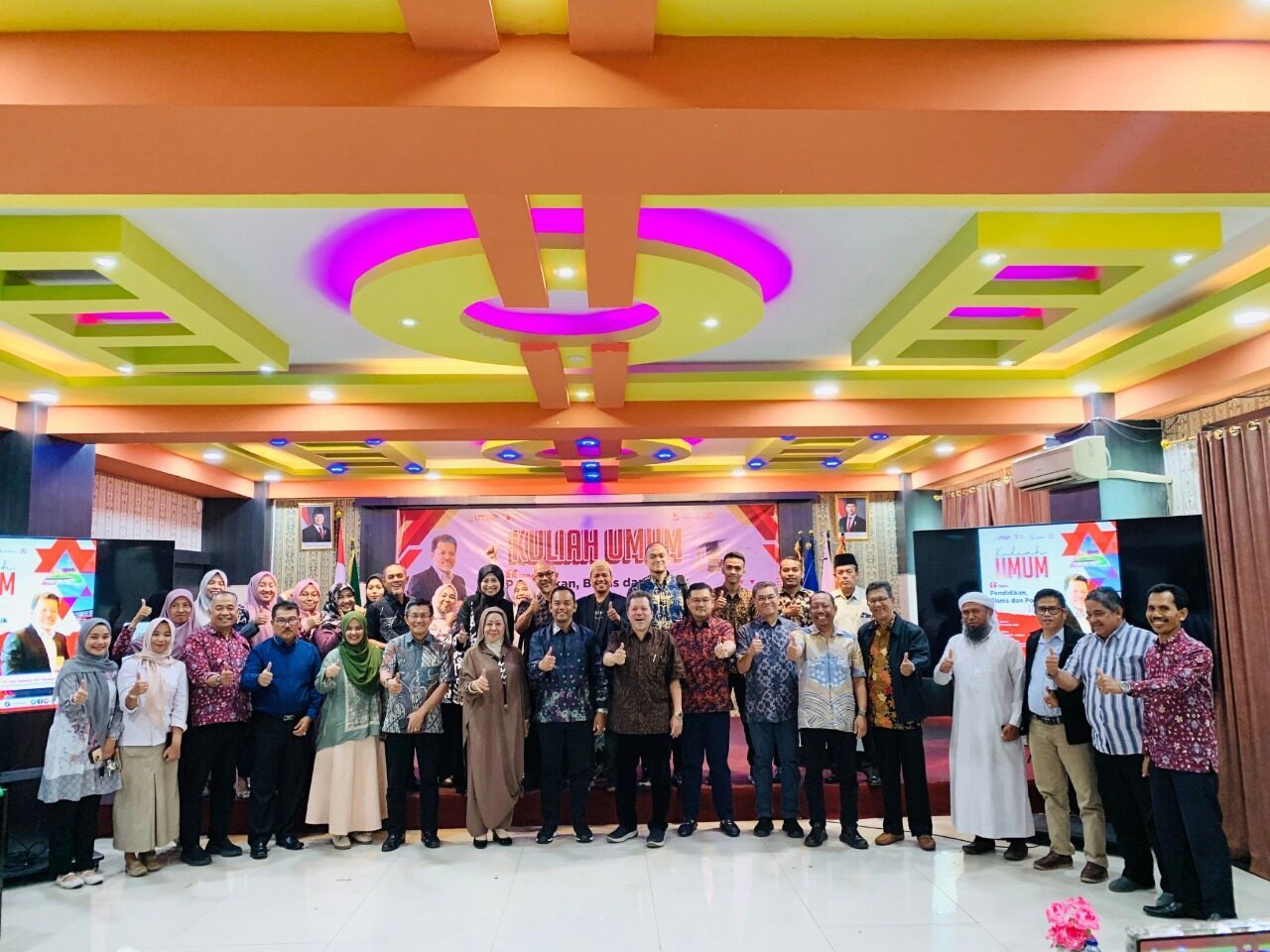 Rektor UM Sumbar, Dr. Riki Saputra, M.A., dalam sambutannya menegaskan bahwa kuliah umum tersebut merupakan wujud komitmen universitas dalam memperluas cakrawala mahasiswa terhadap isu-isu global, terutama keterkaitan antara dunia pendidikan, bisnis, dan politik.