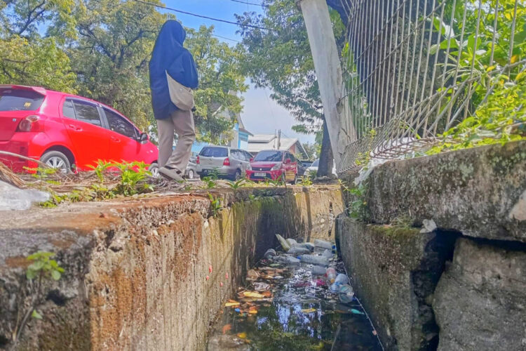 Keterangan foto: Terlihat drainase yang dipenuhi sampah di Jalan Batang Kampar, GOR H Agus Salim, Kota Padang, Rabu (13/8). Akibat banyaknya sampah di drainase tersebut akan menyebabkan banjir ketika hujan deras di kawasan itu. REZA