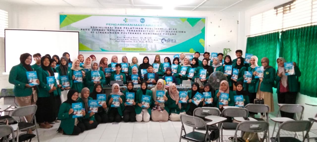 PADANG, HARIANHALUAN.ID – Poltekkes Kemenkes Padang melalui tim dosen melaksanakan kegiatan pengabdian kepada masyarakat berupa sosialisasi dan pelatihan publikasi ilmiah pada Jurnal Nasional Terakreditasi bagi mahasiswa tingkat akhir, Sabtu (23/8).