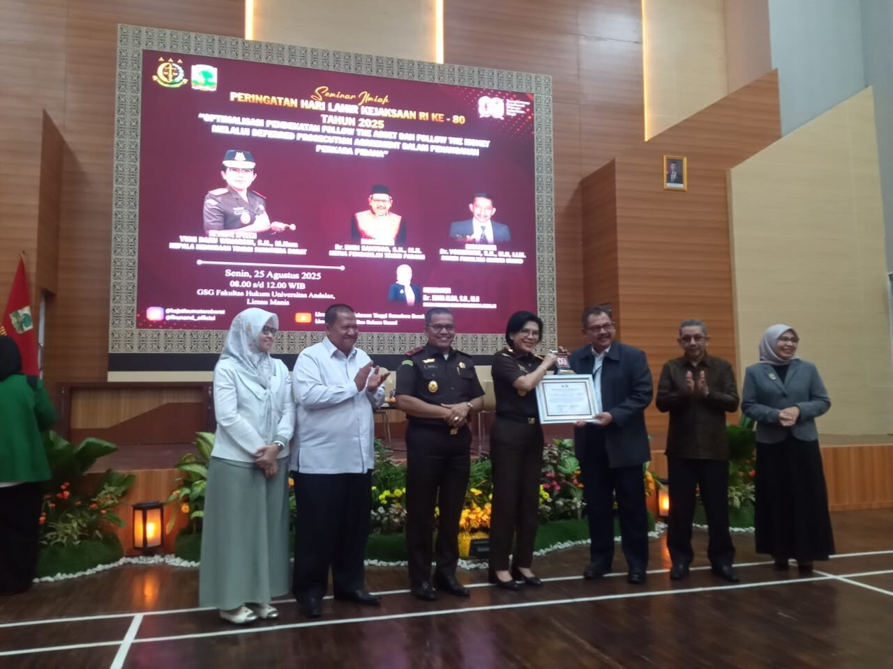 PADANG, HARIANHALUAN.ID – Menyambut hari lahir Adhyaksa, Kejaksaan Tinggi (Kejati) Provinsi Sumatra Barat (Sumbar) menggelar seminar yang digelar di aula Fakultas Hukum Universitas Andalas (Unand), Senin (25/8).