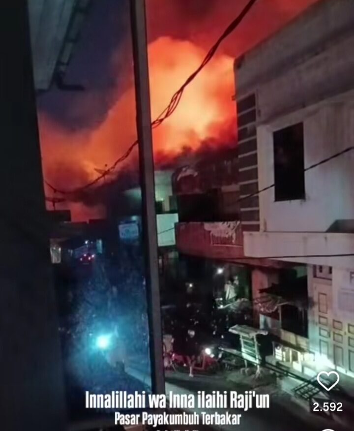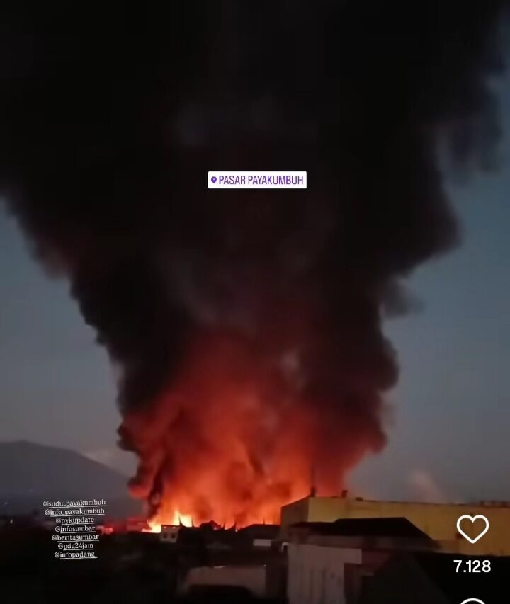 Kebakaran tersebut tampak jelas api membesar dari deretan toko dan asap hitam pun membumbung tinggi di langit pusat Kota Payakumbuh.