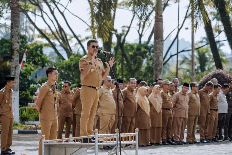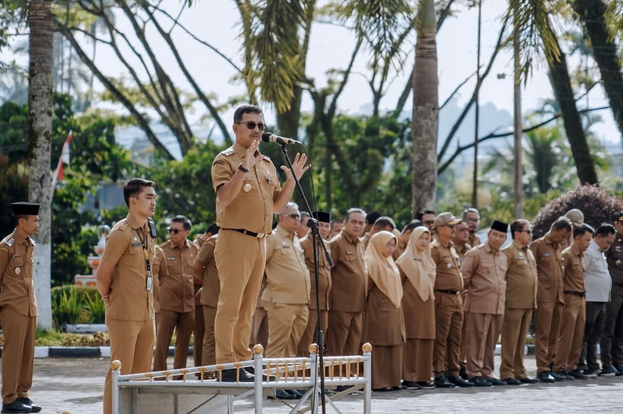“Ini harus dijadikan contoh bagi kita semua dalam menjalankan tugas dan kewajiban. Tidak bisa pintar saja, namun juga bagaimana komunikasi dengan bawahan, mengelola pegawai, disiplin, dan loyalitas dalam bekerja,” tegas Khairunas saat Apel Gabungan ASN di Halaman Kantor Bupati Solok Selatan, Senin (25/8/2025).