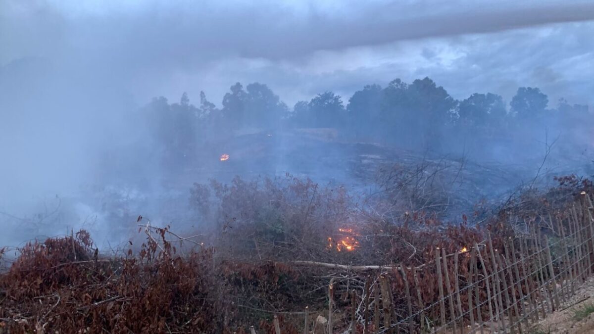Kondisi titik api pada kebakaran lahan yang melanda Kabupaten Aceh Besar, tepatnya di Gampong Bukit Radar Blang Bintang, Kecamatan Blang Bintang, pada Minggu (31/8). Sumber foto: BPBD Kabupaten Aceh Besar.