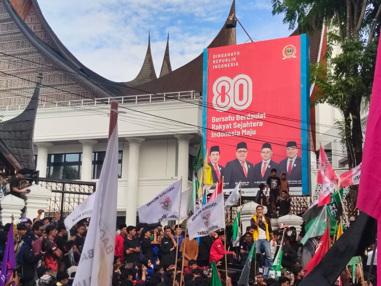 “Kami datang bukan hanya untuk mendukung perjuangan mahasiswa, tapi juga menuntut keadilan bagi saudara kami, Affan Kurniawan. Ia meninggal dunia dalam keadaan sedang bekerja, mencari nafkah. Nyawanya jangan sampai dianggap murah,” tegas salah seorang perwakilan Ojol Sumbar dari atas mobil komando.