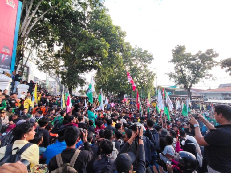 Koordinator simpul massa berulang kali berusaha menenangkan peserta aksi agar tidak terprovokasi dan bertindak anarkis. Dari atas mobil komando, orator mengingatkan mahasiswa untuk tetap fokus pada tuntutan utama, yakni mendesak DPRD mendengar suara rakyat.
