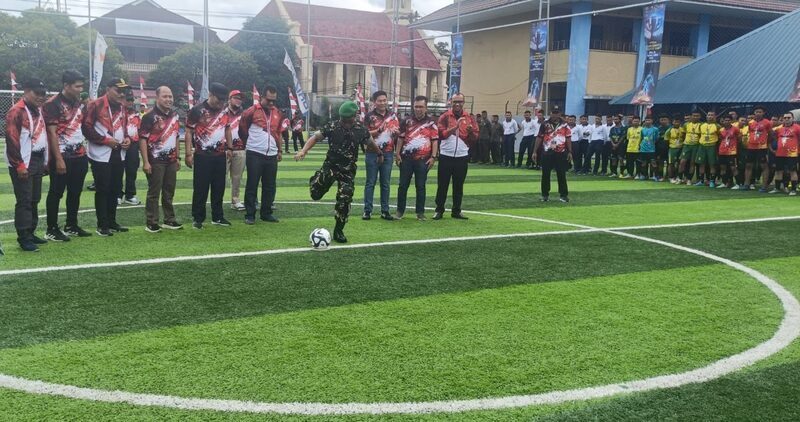 PADANG, HARIANHALUAN.ID — Ratusan penonton memecah keheningan saat Brigjen TNI Mahfud, Komandan Korem (Danrem) 032/Wirabraja, berdiri di tengah Lapangan Mini Soccer Dobi, persisnya di belakang Hotel Bumi Minang, Rabu (3/9/2025). Dengan suara mantap, ia membacakan sambutan Panglima TNI untuk membuka Open Tournament Mini Soccer Piala Panglima TNI yang digelar dalam rangka memperingati Hari Ulang Tahun (HUT) ke-80 TNI tahun 2025.