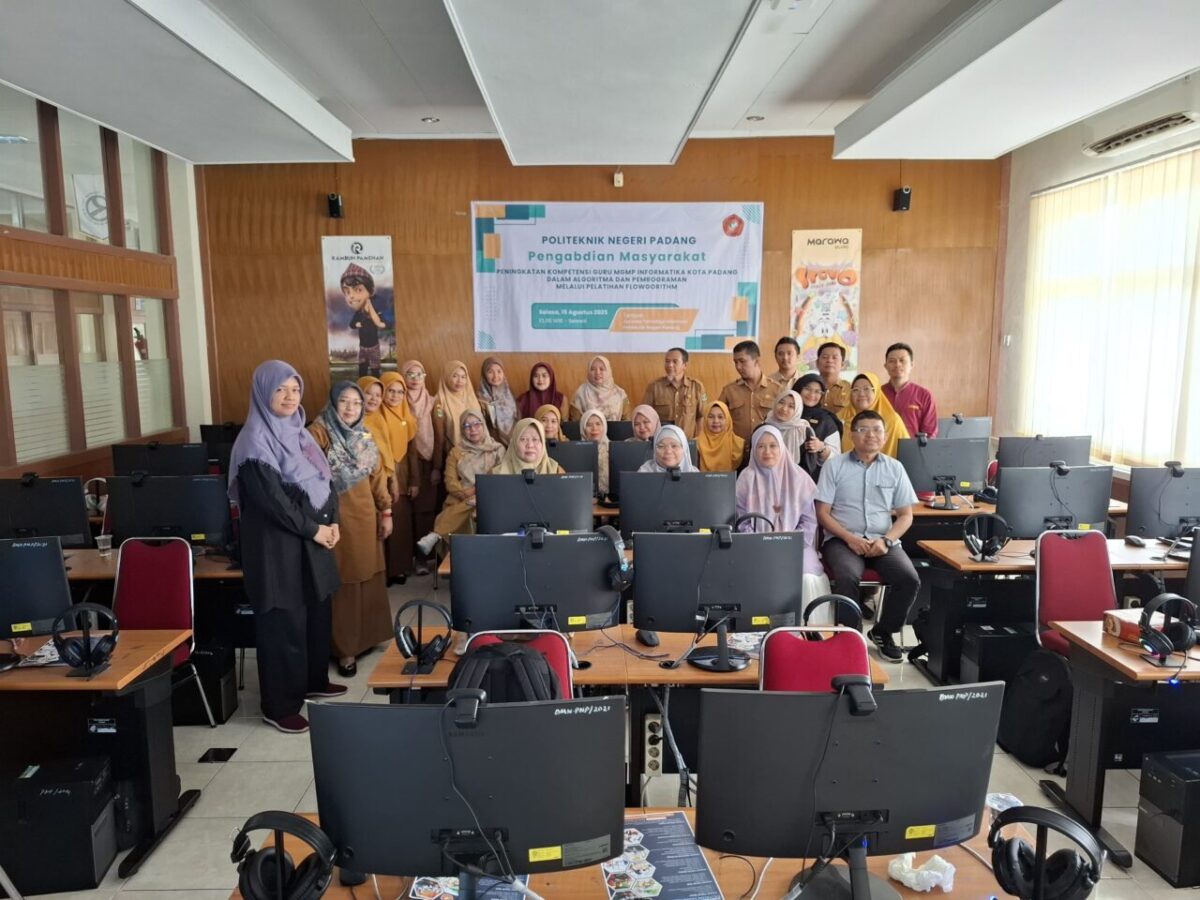PADANG, HARIANHALUAN.ID — Tim dosen dari Program Studi D3 Manajemen Informatika, Jurusan Teknologi Informasi, Politeknik Negeri Padang (PNP) melaksanakan kegiatan pengabdian kepada masyarakat berupa pelatihan penggunaan Flowgorithm bagi guru-guru Informatika SMA yang tergabung dalam Musyawarah Guru Mata Pelajaran (MGMP) Kota Padang. Kegiatan ini dilaksanakan pada bulan Agustus 2025 dan bertujuan meningkatkan kompetensi guru dalam mengajarkan algoritma secara visual dan interaktif.