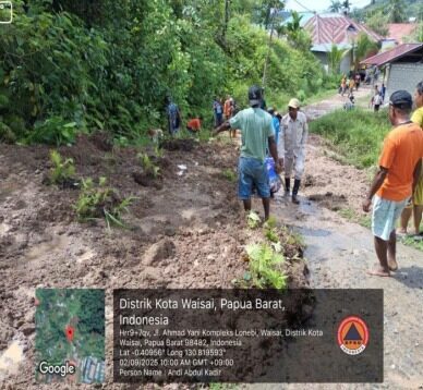 Upaya penanganan dari BPBD Kabupaten Raja Ampat juga telah dilakukan hingga Kamis (4/9). Tim BPBD bersama lintas sektor telah mengupayakan pembersihan material longsoran. Koordinasi lanjutan juga telah dibangun untuk mengoperasikan alat berat guna percepatan penanganan.