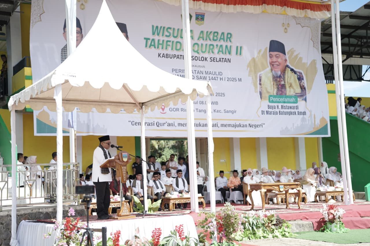 “Pelaksanaan Wisuda Tahfidz Akbar II ini adalah bukti nyata keberhasilan program Bupati Solok Selatan. Momentum zikir dan doa bersama ini juga menjadi sarana mendekatkan diri kepada Allah SWT demi terciptanya Solok Selatan yang aman, damai, dan sejahtera,” tambahnya.