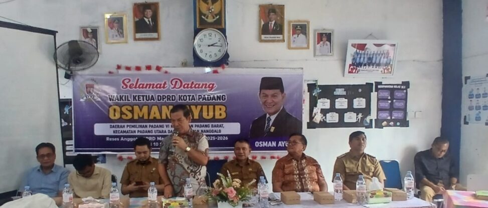 PADANG, HARIANHALUAN.ID — Aula SMPN 4 Padang di Jalan Pulau Karam, Kecamatan Padang Barat, Kota Padang, mendadak penuh sesak, Senin (8/9/2025). Ratusan wali murid, guru, alumni, hingga tokoh masyarakat hadir menyampaikan aspirasi langsung kepada Wakil Ketua DPRD Kota Padang, Osman Ayub, dalam agenda Reses Masa Sidang I Tahun 2025-2026. Suasana dialog berlangsung hangat sekaligus penuh harapan, khususnya terkait peningkatan fasilitas sekolah.