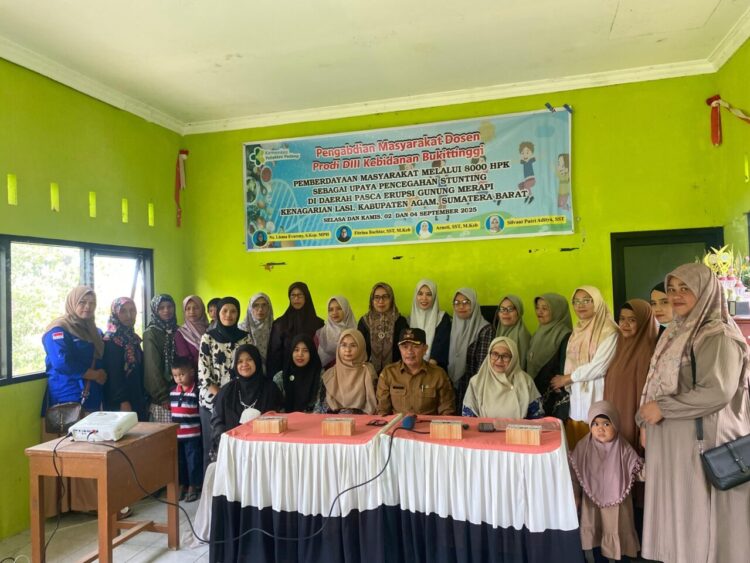 BUKITTINGGI, HARIANHALUAN.ID – Meningkatkan kesadaran dan partisipasi masyarakat dalam pencegahan stunting, Dosen Program Studi (Prodi) D3 Kebidanan Bukittinggi Poltekkes Kemenkes Padang, melakukan Pengabdian Masyarakat (Pengmas) di Nagari Lasi, Kecamatan Canduang, Kabupaten Agam.