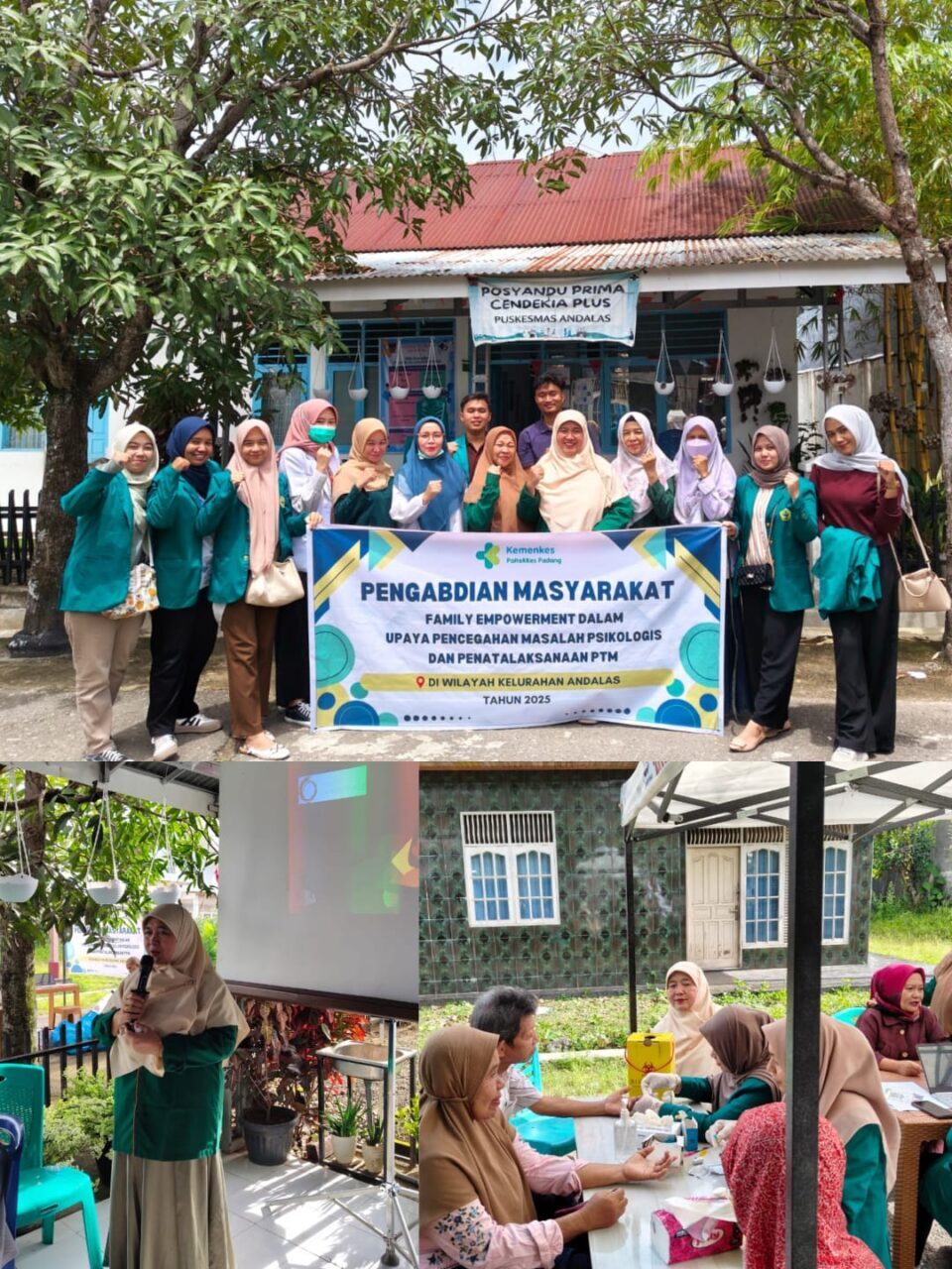 Kegiatan ini bertema Family Empowermant dalam upaya pencegahan masalah psikososial dan penatalaksanaan PTM di Wilayah Kelurahan Andalas Kota Padang.